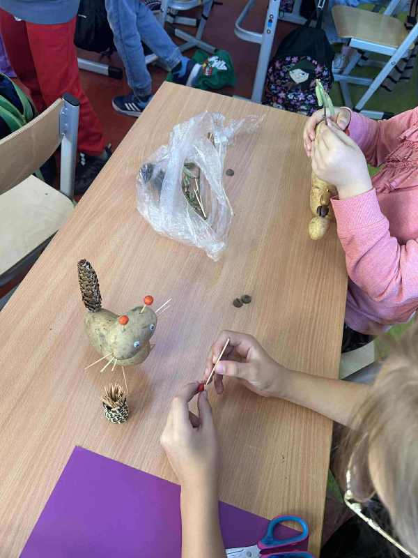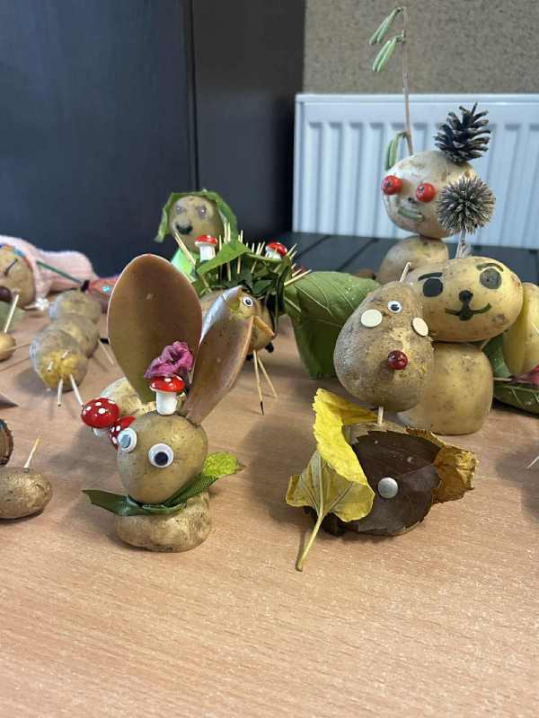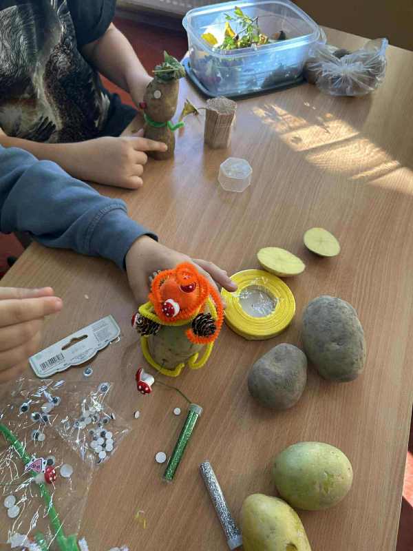 Na początek uczniowie uczestniczyli w konkurencjach sportowych i Quizach o ziemniaku. Ogromną kreatywnością wykazali się na warsztatach, na których wykonywali figurki z ziemniaków.